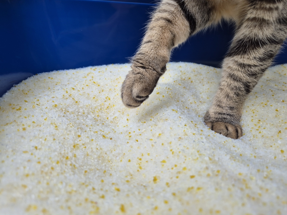 Üblicherweise haben wir eine klumpende Betonitstreu im Einsatz. Durch vorangegangene Produkttests und auch den Aufenthalt in Katzenpensionen, sind unsere Fellnasen aber grundsätzlich auch andere Streusorten gewohnt.